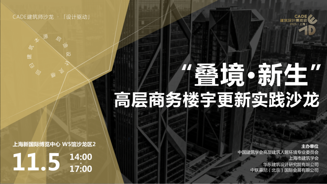 CADE 建筑设计博览会 2025(上海)启幕,水石设计受邀参与同期 “叠境・新生 - 高层商务楼宇更新实践” 沙龙。创始合伙人、总建筑师沈禾作《垂直再造社区》主题分享,解锁高层商业楼宇改造活化的可持续路径。